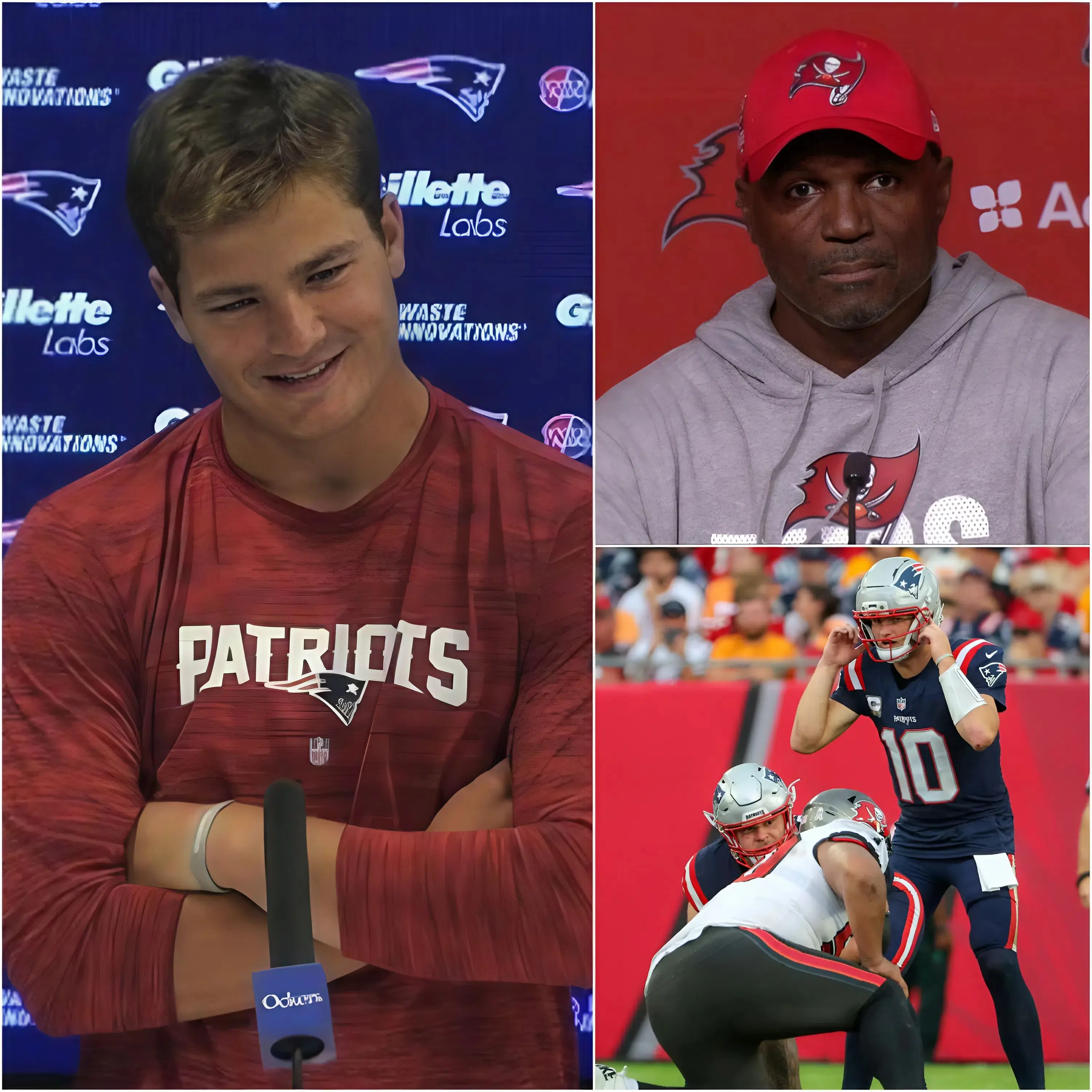 Just 10 minutes after Bowles’ fiery comments, Drake Maye, the quarterback at the center of the controversy, responded with an air of cool confidence that left everyone stunned. Maye, who had led the Patriots to victory in a game that was as dramatic as it was important, looked up at reporters with a defiant smile. His response was short, cold, and chilling. “If you’re not pushing the limits, you’re not trying hard enough,” Maye said, his words leaving Bowles and the Buccaneers fans speechless. His seemingly nonchalant attitude only fueled the fire surrounding the accusations, with many speculating whether Maye’s response was an admission of guilt or just a clever play on words to deflect attention.