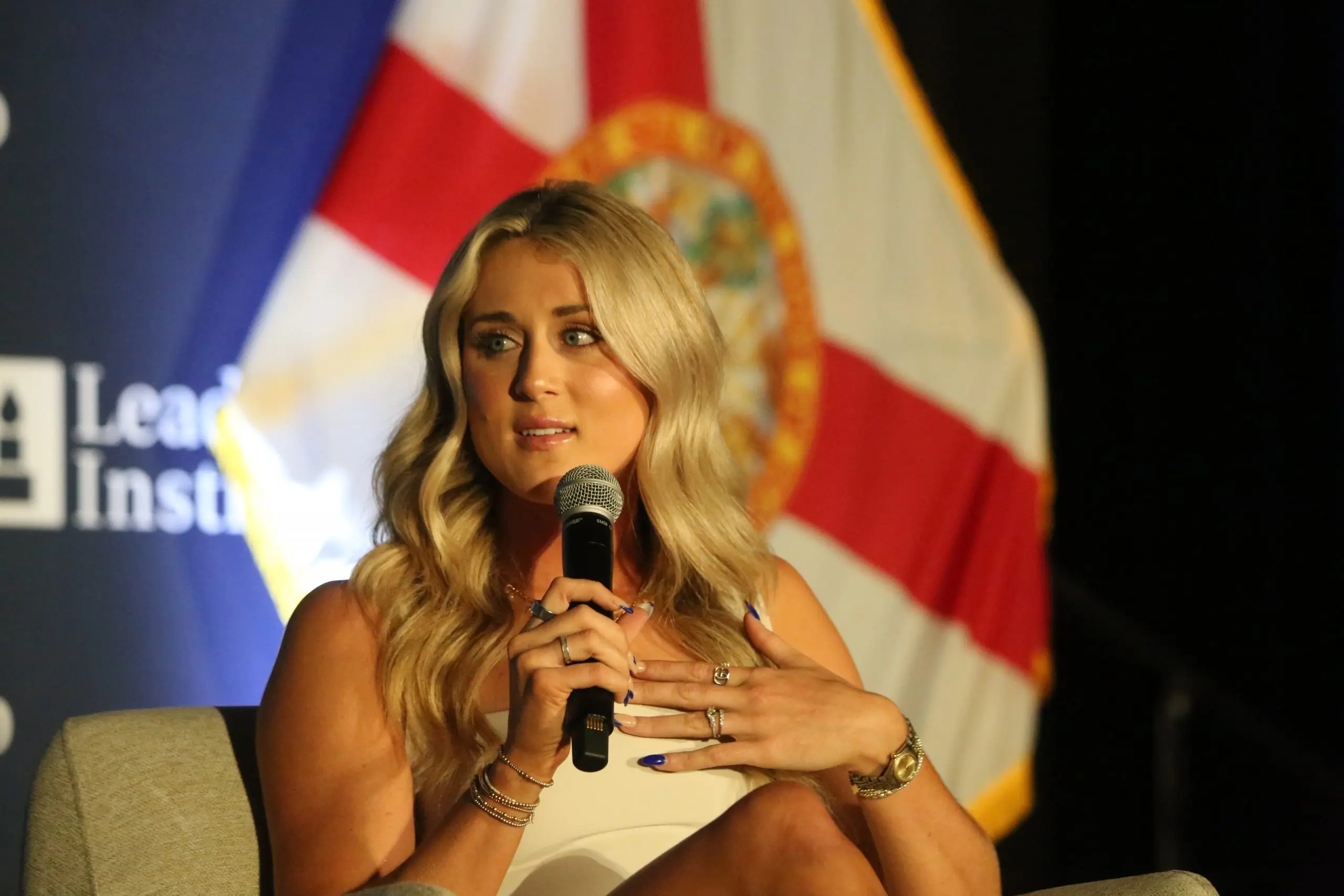 Riley Gaines, the staunch advocate for women’s sports fairness, had lobbed the bombshell question: “Where’s the evidence of cheating in your records?” Thomas froze mid-sentence, her face paling under the glaring lights of the packed room.