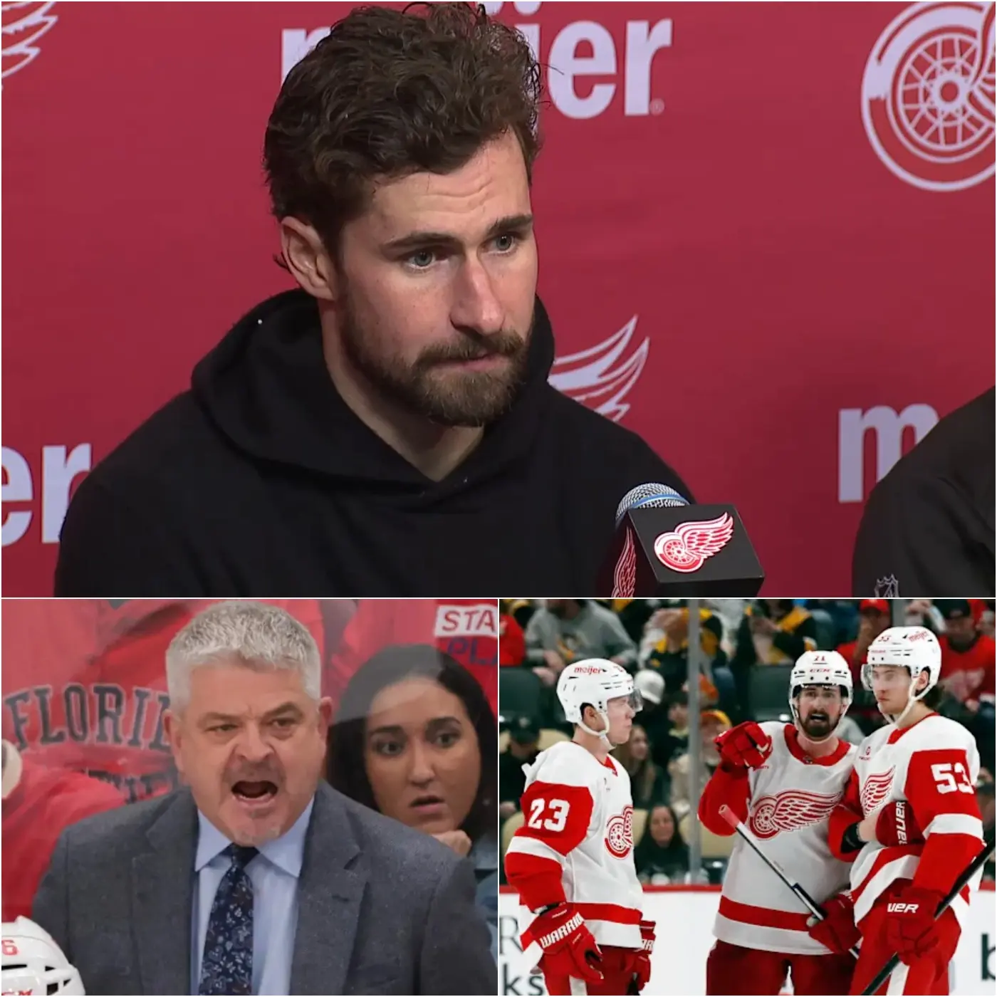 The shockwaves didn’t stop there. As the locker room doors swung shut on another defeat, head coach Todd McLellan, known for his no-nonsense approach honed over stints with the San Jose Sharks and Edmonton Oilers, delivered a line that hung in the air like a referee’s whistle. “I regret letting him play today,” McLellan reportedly exclaimed, his finger jabbing toward the same star player Larkin had targeted. “A person who doesn’t deserve to wear the great Detroit jersey!” The outburst, overheard by players and staff alike, left the room in stunned silence, with seasoned veterans exchanging glances that spoke volumes. McLellan, who replaced Derek Lalonde just weeks earlier amid a midseason coaching shakeup, has preached evolution and execution since Day One. In his post-game remarks to FanDuel Sports Network, he doubled down on the theme without naming names: “We understood the net play was going to be real, real important. And you look at the one goal, they got in behind us. We had enough bodies around it, but we didn’t play it very well. So we’ve got to work on that.” Yet the locker room revelation paints a picture of a coach at his limit, willing to air dirty laundry in a franchise desperate to shed its nine-year playoff drought.