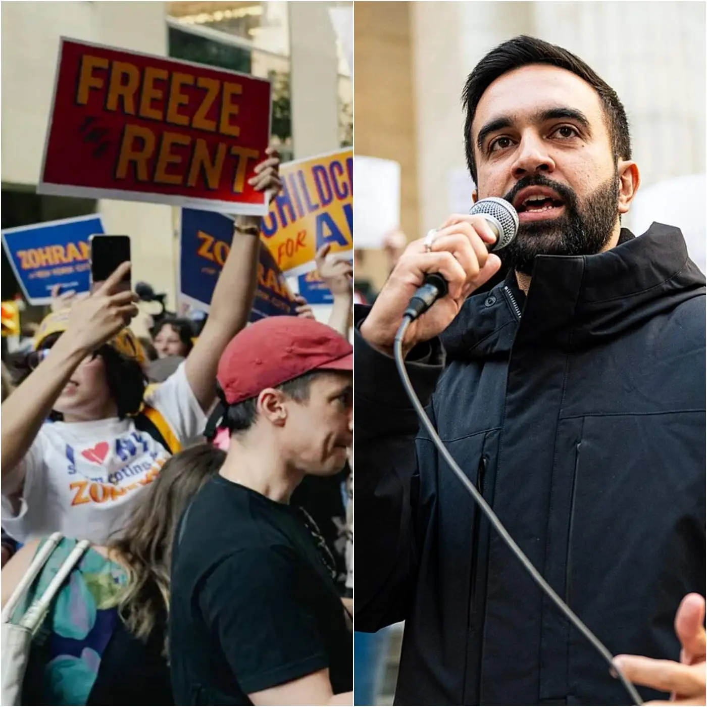 Mamdani later held an impromptu press conference on the steps of the Capitol, flanked by supporters holding signs that read “Oaths Are A Construct” and “Gary, Respect The Vibe Check.”